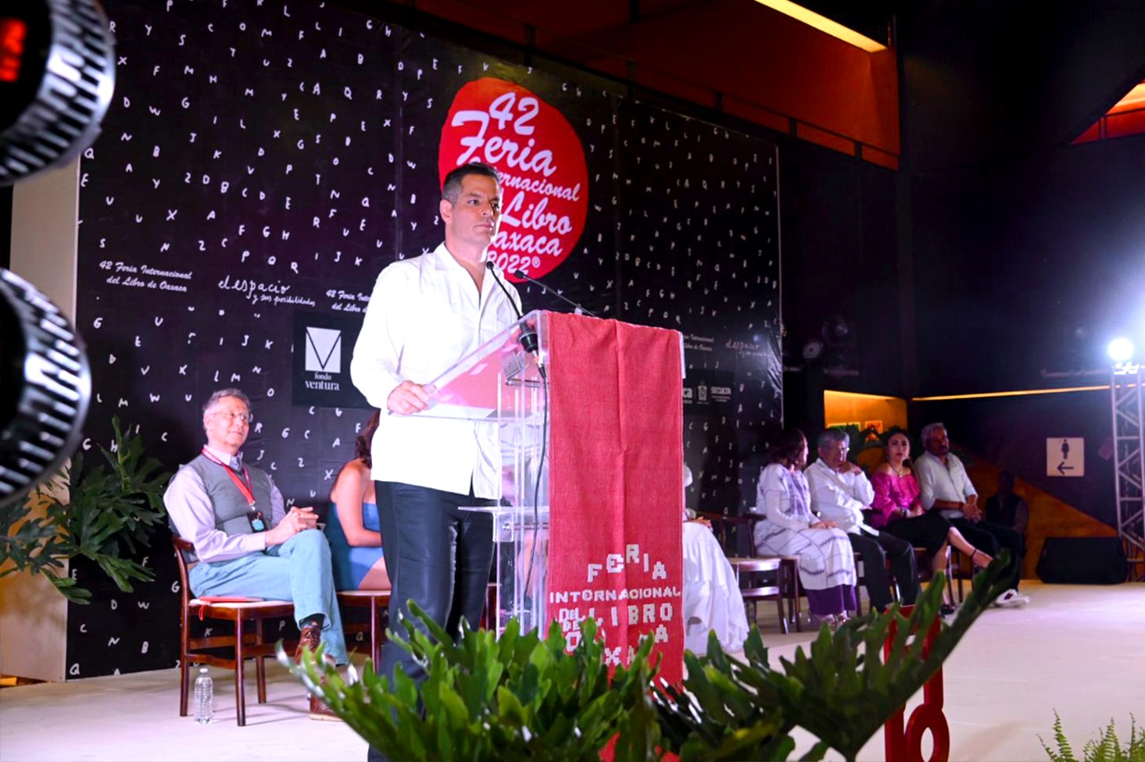 En compañía de los organizadores, Vania Reséndiz y Guillermo Quijas, grandes animadores de la cultura y promotores del libro a nivel nacional e internacional, el Mandatario oaxaqueño resaltó que “lo único que no le puede faltar al ser humano son las ideas, y en esta pandemia, todas y todos vivimos en espacios cerrados, pero sin duda, los libros nos abrieron esas posibilidades de seguir soñando, de reflexionar, debatir y pensar qué ruta queremos para la sociedad. La verdad me entusiasma mucho estar hoy aquí con ustedes a nombre de Oaxaca”, dijo.