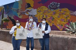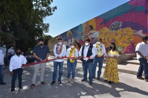 Finalmente, el Mandatario Oaxaqueño realizó el corte de listón inaugural del Festival Mural Cuicatlán que contará con la participación de 15 artistas nacionales y locales de gran trayectoria, quienes llenarán de vida la calle Victoriano González de esta localidad, en dos etapas que comprende del 15 al 28 de marzo y de 3 al 18 de abril, con el tema principal de la reserva de la biosfera de Tehuacán- Cuicatlán.