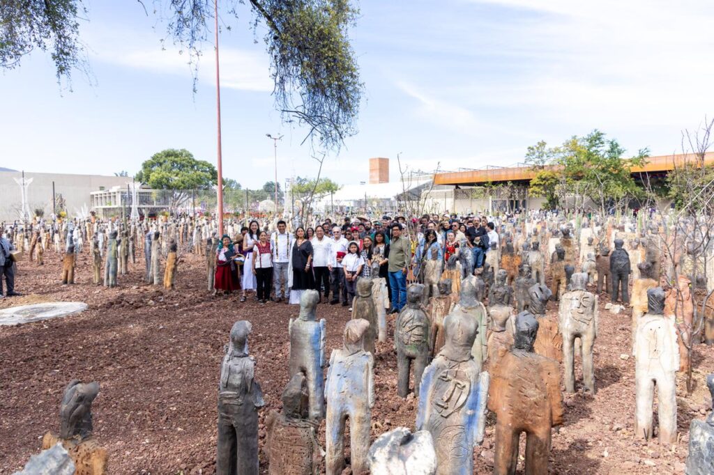Por su parte, Lucio Santiago López, explicó que las esculturas tardaron siete años en crearse y que el hecho de ver cómo muchas personas de su pueblo natal migraron, motivó también a Alejandro Santiago, su padre, para realizar esta obra, como una manera de repoblar simbólicamente su comunidad.