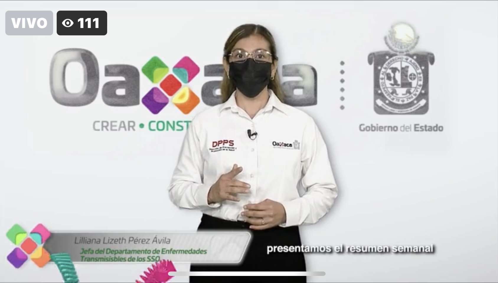 Oaxaca de Juárez, Oax., 10 de junio de 2022.-La jefa del departamento de Enfermedades Transmisibles de los Servicios de Salud de Oaxaca (SSO), Liliana Lisseth Pérez Ávila, al presentar el resumen semanal de la situación epidemiológica actual de la pandemia por COVID-19, precisó que en los últimos siete días se notificó un incremento en el número de contagios del 26.25%.