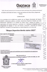 Incude Oaxaca presenta la convocatoria para el Concurso de Oposición del Bloque Deportivo “Benito Juárez 2022”