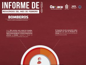 El Heroico Cuerpo de Bomberos de Oaxaca (HCBO) brindó 334 servicios entre control de incendios, accidentes de tránsito, prehospitalarios, atención a fugas y material peligroso, rescate y salvamento de personas y animales, capacitación y difusión de programas preventivos, de proximidad social y otros.