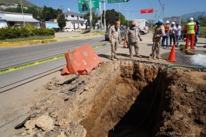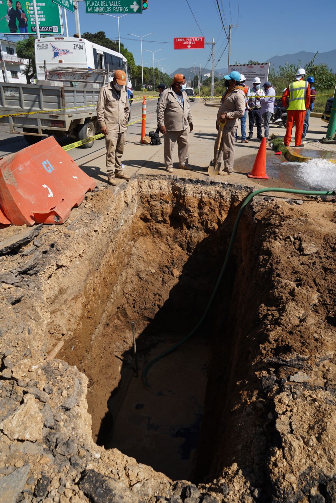Fue necesario realizar este corte a la distribución de agua potable de manera emergente, debido a los daños ocasionados en la línea de conducción Acueducto – Cárcamo, un sistema de conducción primordial con una dimensión de 24 pulgadas de diámetro.
