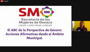 Oaxaca de Juárez, Oax. 2 de marzo de 2021. A fin de reforzar conocimientos sobre cómo transversalizar la perspectiva de género en la toma de decisiones a nivel local, la Secretaría de las Mujeres de Oaxaca (SMO) inicia “Marzo Mes de las Mujeres” con la capacitación “El ABC de la Perspectiva de Género: acciones afirmativas desde el ámbito municipal” dirigida a mujeres que se desempeñan como concejalas y directoras de las Instancias Municipales de las Mujeres.