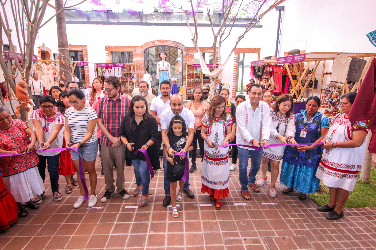 En el corte de listón inaugural participaron también maestras y maestros artesanos, Alonso Avendaño, asesor de la Secretaría de Desarrollo Económico; Angélica Vásquez Cruz, maestra artesana Premio Nacional de las Ciencias y Artes 2008, Irasema Aquino González, Regidora de Desarrollo Económico del Municipio de Oaxaca de Juárez y Biaani Palomec Enríquez.