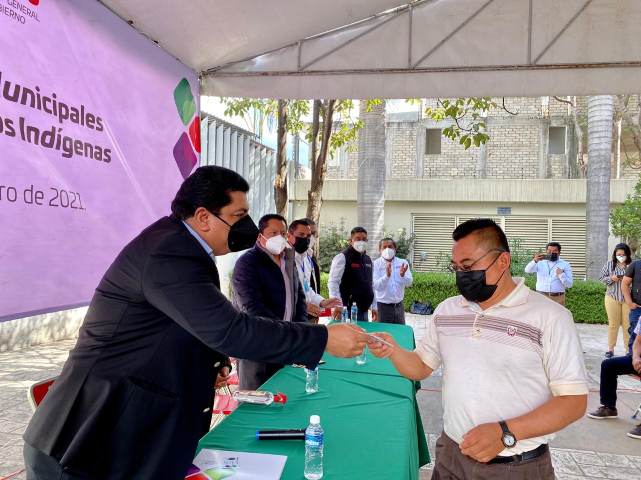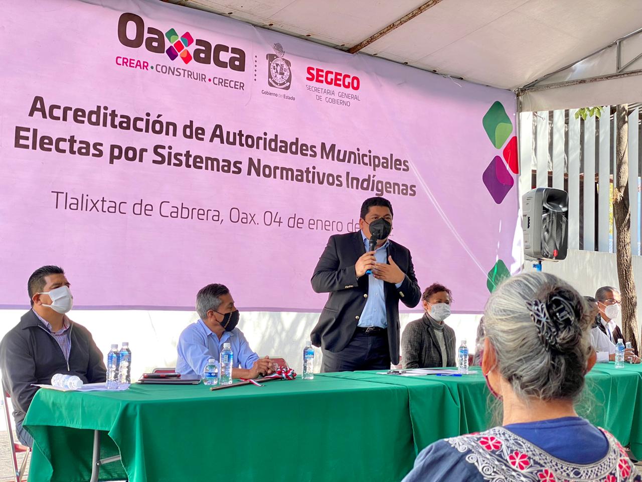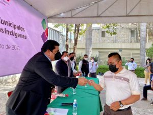 El secretario general de Gobierno, Francisco Javier García López, informo que, “como lo establece la Ley orgánica municipal vigente, este día iniciamos con la entrega de acreditaciones de las y los presidentes municipales, síndicos, concejales, secretarios y tesoreros, que fueron electos bajo los Sistemas Normativos Indígenas, mismos que entraron en funciones el pasado 1 de enero de 2021”.