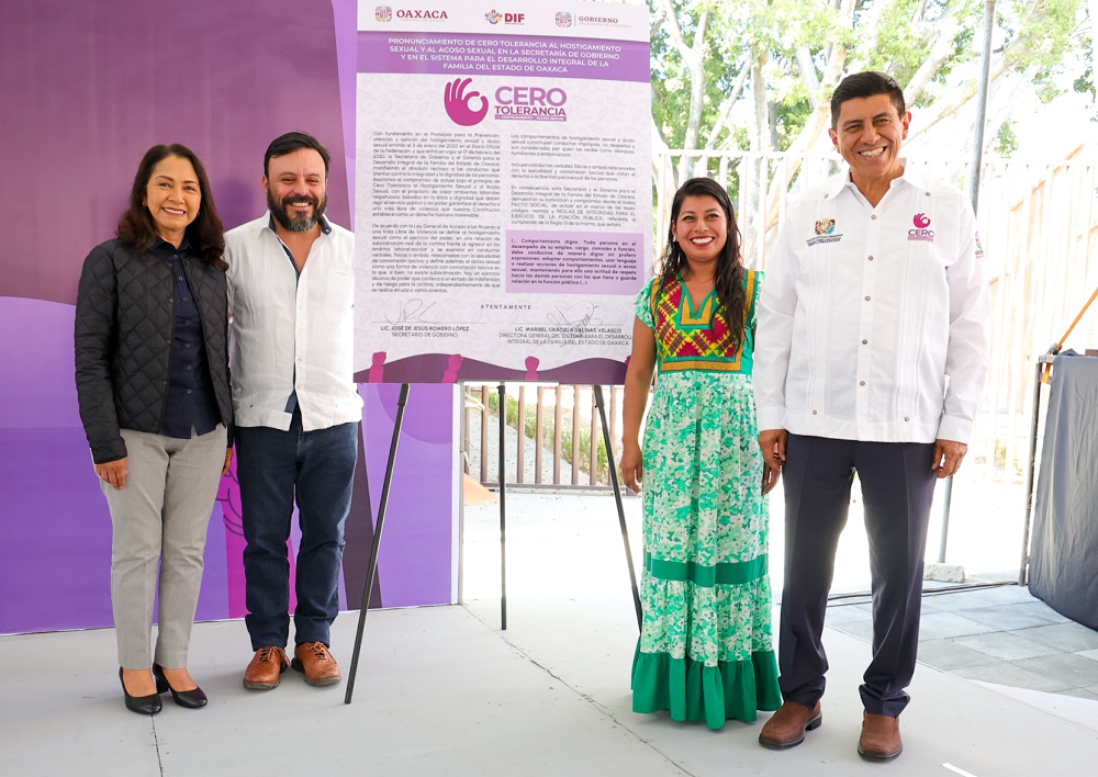 Cabe destacar que en este marco, durante la puesta en marcha de esta estrategia en el Sistema DIF Oaxaca, se firmó el pronunciamiento en contra del hostigamiento y acoso sexual, el cual fue encabezado por el Gobernador Salomón Jara Cruz, la Presidenta Honoraria del DIF Estatal, Irma Bolaños Quijano y el Secretario de Gobierno, Jesús Romero López.
