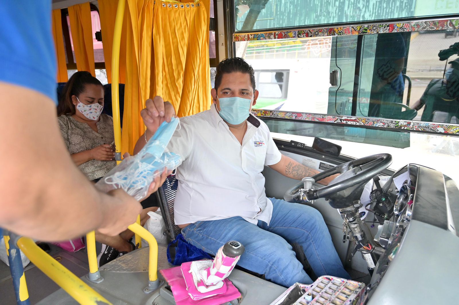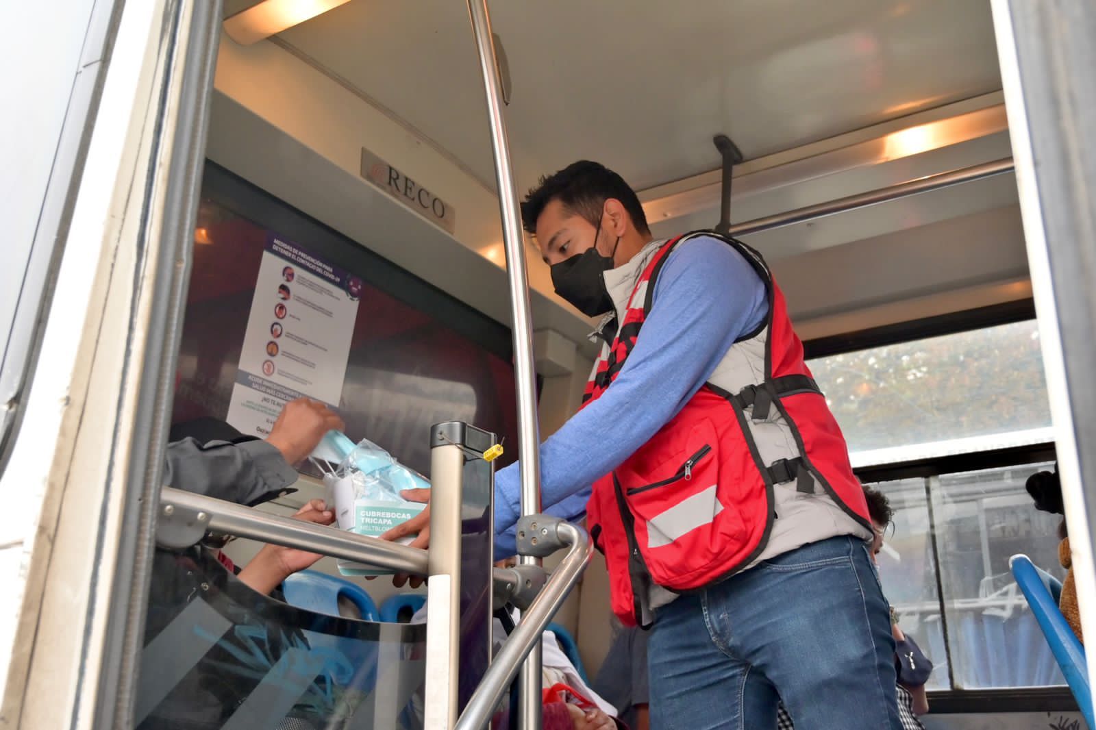 • Como parte de la campaña, “Por ti y por todos, usa cubrebocas”, se entregaron 5 mil de estas mascarillas sanitarias a usuarios del transporte público
