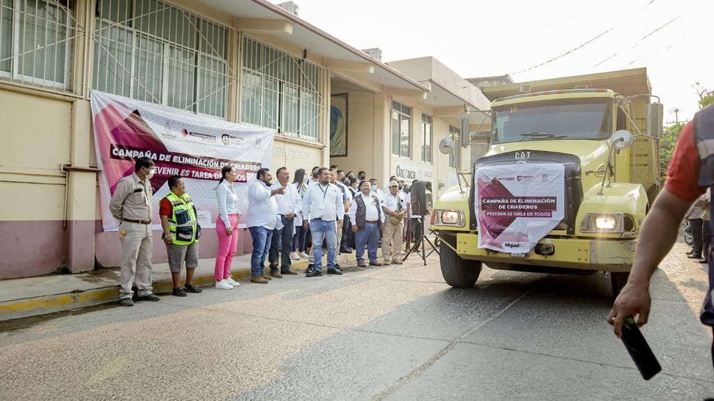 • Buscan retirar todos los recipientes que pueden acumular agua y evitar que se formen criaderos de mosquitos Aedes aegyptiJuchitán de Zaragoza, Oax. 11 de abril de 2023.- Anticipando la temporada de lluvias, a través de la estrategia “Lava, tapa, voltea y tira”, los Servicios de Salud de Oaxaca (SSO), iniciaron la “Campaña de Eliminación de Criaderos” de mosquitos transmisores para prevenir casos de dengue, zika y chikungunya en Juchitán de Zaragoza.El jefe de la Jurisdicción Sanitaria número dos de la región del Istmo de Tehuantepec, Hebert Vidal Sánchez, acompañado del presidente municipal, Miguel Sánchez Altamirano, dieron el banderazo de salida a los vehículos tipo volteo que recolectarán llantas, botellas, macetas, cubetas y todo tipo de recipiente que acumule agua y pueda ser factor de riesgo para estas enfermedades.El jefe del sector informó que a partir de este martes 11 de abril inician los recorridos por las colonias en coordinación con la autoridad municipal de la ciudad.Exhortó a la población a hacer limpieza en los hogares para que cuando los camiones recolectores se encuentren en sus colonias puedan retirar todos los recipientes que pueden acumular agua y evitar con ello que se formen criaderos de mosquitos Aedes aegypti.Los días 19 y 20 de abril estará activa la campaña en la novena sección, el día 26 en la colonia Mártires, asimismo el 27 y 28 del presente mes en la Séptima Sección y para el resto del municipio se solicita estar pendiente de la programación en las redes digitales y perifoneo móvil.El jefe jurisdiccional detalló que hasta la semana epidemiológica número 13, el Sistema de Vigilancia Epidemiológica de Dengue tiene registrados 39 casos confirmados por laboratorio, con cero defunciones en todo el estado.De acuerdo a su clasificación clínica, 8 (21 por ciento) corresponden a Dengue No Grave y 31 (79 por ciento) a Dengue con Signos de Alarma y Dengue Grave. Con mayor incidencia en la población de 10 a 29 años de edad.Respecto a nivel Jurisdiccional, a la misma fecha, la dependencia tiene registrados tres casos de dengue, de los cuales uno corresponde a Dengue No Grave y dos a Dengue con Síntomas de Alarma reportados en Juchitán de Zaragoza, Santa María Jalapa del Marqués y San Pedro Tapanatepec.El funcionario recordó que con esta campaña la administración que encabeza el Gobernador Salomón Jara Cruz y la secretaria de Salud, Alma Lilia Velasco Hernández, impulsan en equipo políticas públicas para el cuidado de la salud de toda la población, a fin de seguir transformando a Oaxaca para el bien de todas y todos.Señaló la importancia de la participación comunitaria en la lucha contra el vector, “es necesario que en todos los hogares se realicen rutinariamente acciones de limpieza. Sin mosquito no hay dengue, zika y chikungunya, la salud es responsabilidad de todas y todos”.Así también anunció que este 12 de abril en coordinación con el Programa de Vectores, brigadas del municipio y ciudadanía de Juchitán, se realizarán acciones de remoción de algas verdes filamentosas y corte de vegetación a las orillas del “Río Los Perros”, en esta demarcación, para evitar criaderos de mosquitos que pueden transmitir el paludismo.