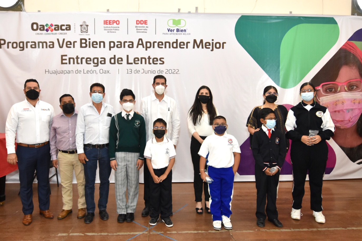 Huajuapan de León, Oax. 14 de junio de 2022.- El Instituto Estatal de Educación Pública de Oaxaca (IEEPO) y el programa “Ver bien para aprender mejor” iniciaron con la entrega de lentes del primer cuatrimestre del 2022, a mil 545 alumnos beneficiados en las Jornadas de Atención Optométrica, correspondientes a 290 escuelas de 36 municipios de la Mixteca, Costa y en San Juan Bautista Tuxtepec, en la Cuenca del Papaloapan.