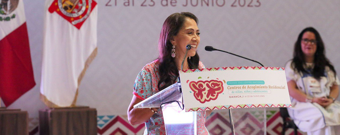 En su oportunidad, la titular del SNDIF Nuria Fernández Espresate comentó que este evento nacional representa una oportunidad para trazar un nuevo modelo de atención basado en la Procuraduría Federal de Protección de Niñas, Niños y Adolescentes para que este sector de la población sea sujeto de derechos, es decir, que sean personas vistas, respetadas y con derechos.