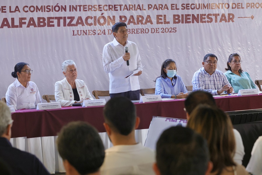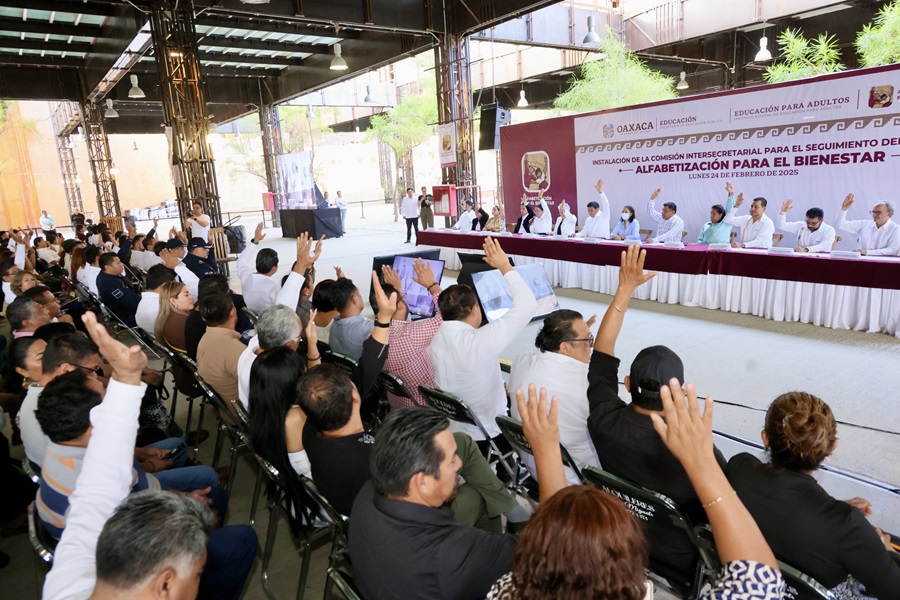 Santa Lucía del Camino, Oax. 24 de febrero de 2025.- El Gobernador del Estado, Salomón Jara Cruz presidió la instalación de la Comisión Intersecretarial para el Seguimiento del Programa Alfabetización para el Bienestar, que coordinará los esfuerzos gubernamentales para acercar el conocimiento y el desarrollo a las personas mayores de 15 años que, por diversas circunstancias, no saben leer ni escribir.