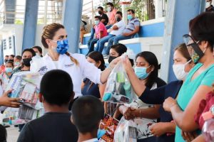 La esposa del Mandatario Estatal añadió que también se está trayendo equipamiento para las escuelas, porque esta pandemia en algún momento pasará, y necesitamos reforzar los centros educativos para que niñas y niños tengan las herramientas necesarias para su educación.
