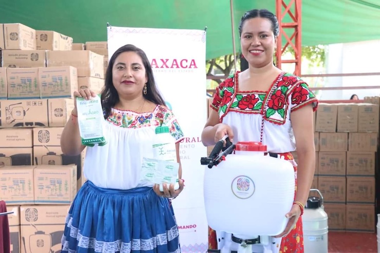 De manera simbólica recibieron la entrega Julio Martínez, productor de Santa María Colotepec y Rosa Priscila José, productora de Santo Domingo de Morelos.