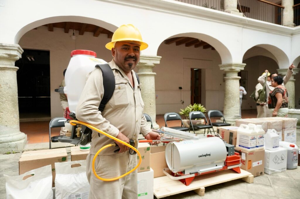 Oaxaca de Juárez, Oax., 7 de abril de 2025.- Con una inversión superior a los 5 millones de pesos, Servicios de Salud de Oaxaca (SSO) refuerza su compromiso en el control de enfermedades transmisibles por vectores, al dotar de insecticida para zancudos, larvicidas y equipamiento especializado para combatir el dengue, zika y chikungunya.