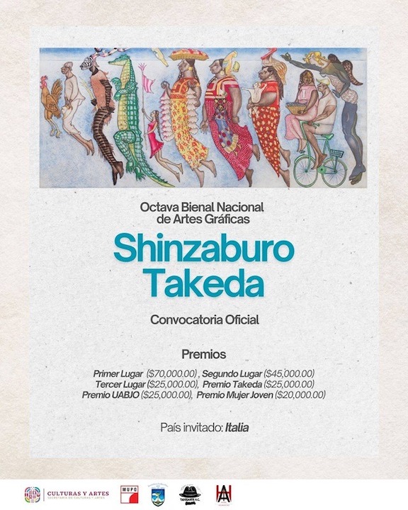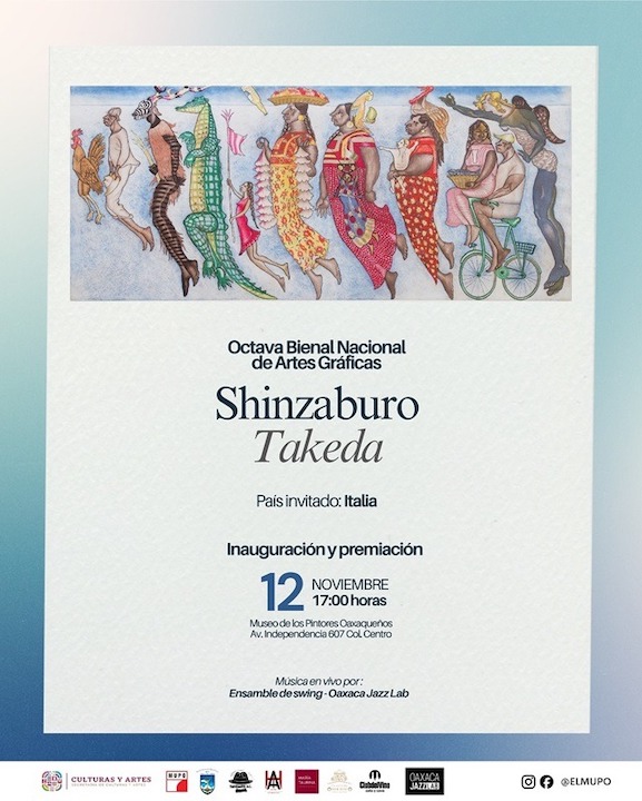 Oaxaca de Juárez, Oax. 10 de noviembre de 2025.– La Secretaría de las Culturas y Artes de Oaxaca (Seculta) invita al público a la inauguración y premiación de la VIII Bienal Nacional de Artes Gráficas Shinzaburo Takeda, que se realizará este miércoles 12 de noviembre, a las 17:00 horas, en el Museo de los Pintores Oaxaqueños (Mupo).
