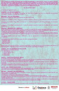 La convocatoria va dirigida a estudiantes, así como ex alumnos del Taller Rufino Tamayo e integrantes de los talleres comunitarios infantiles y juveniles de la entidad; está divida en tres categorías: “A”  para niñas y niños de 6 a 10 años; “B” para niñas, niños y jóvenes de 11 a 16 años y “C” para personas de 17 años en adelante.