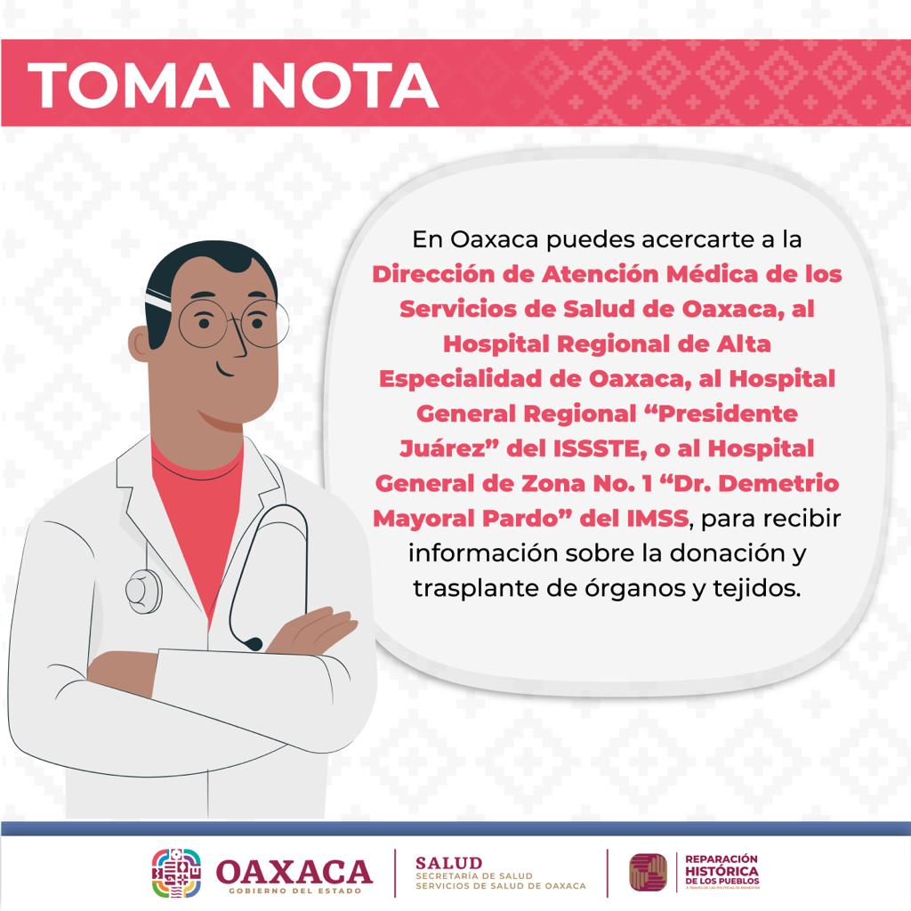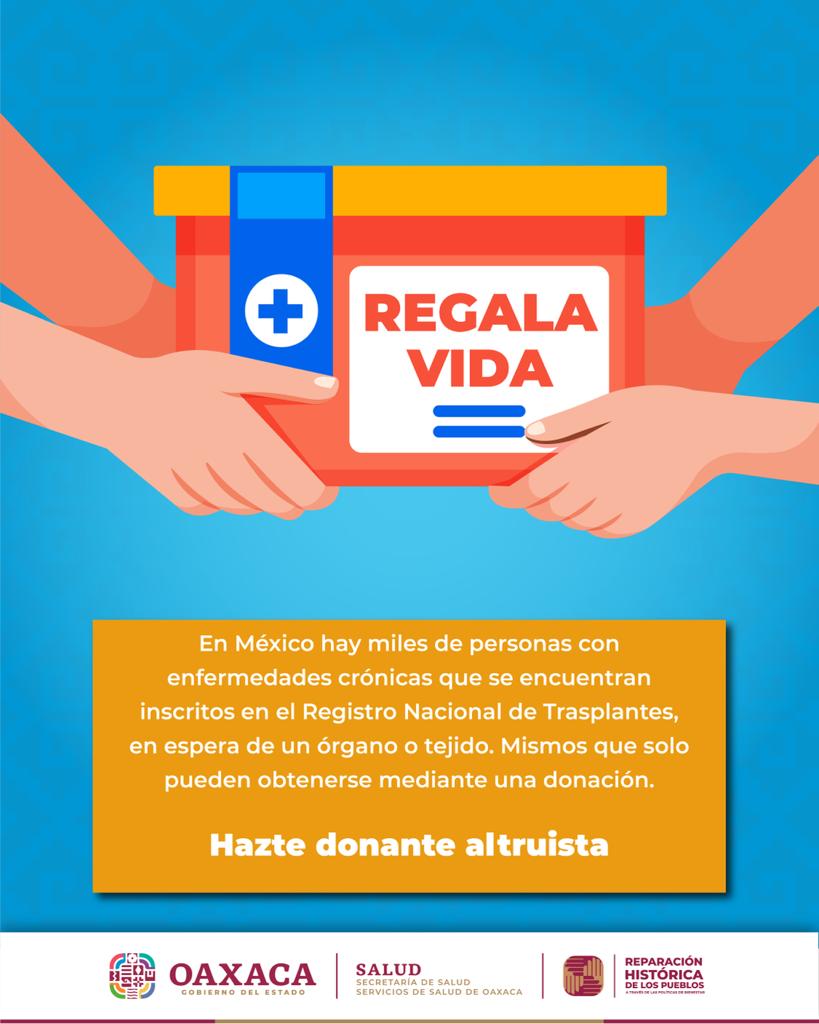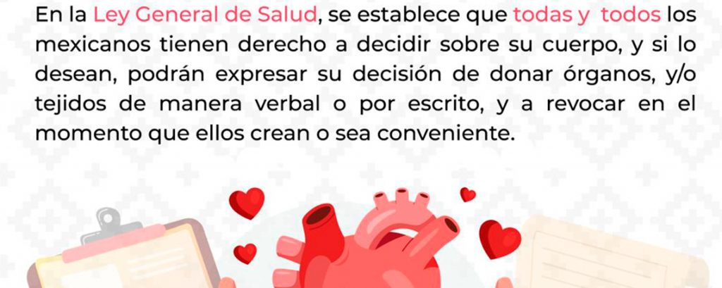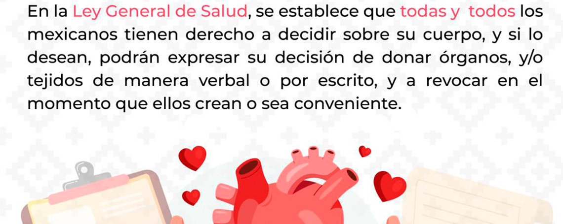 Por lo que invitó a las personas interesadas a consultar la página del Centro Nacional de Trasplante “Donación expresa de órganos y tejidos para después de la muerte” y registrar sus datos y expresar a sus familiares, su deseo de ser donante en: https://dv.cenatra.salud.gob.mx/registrar.php.