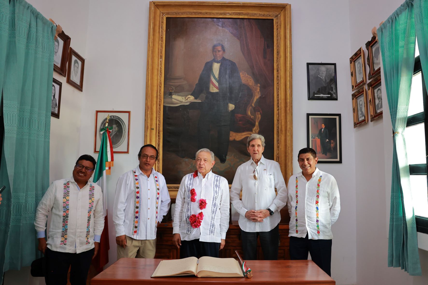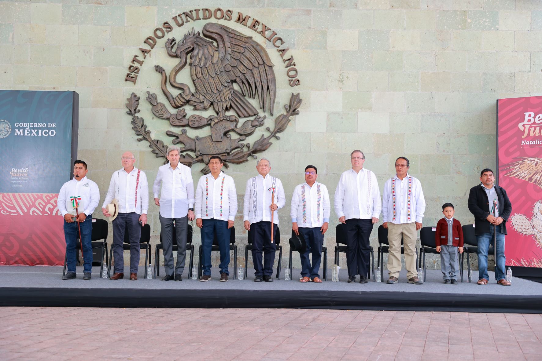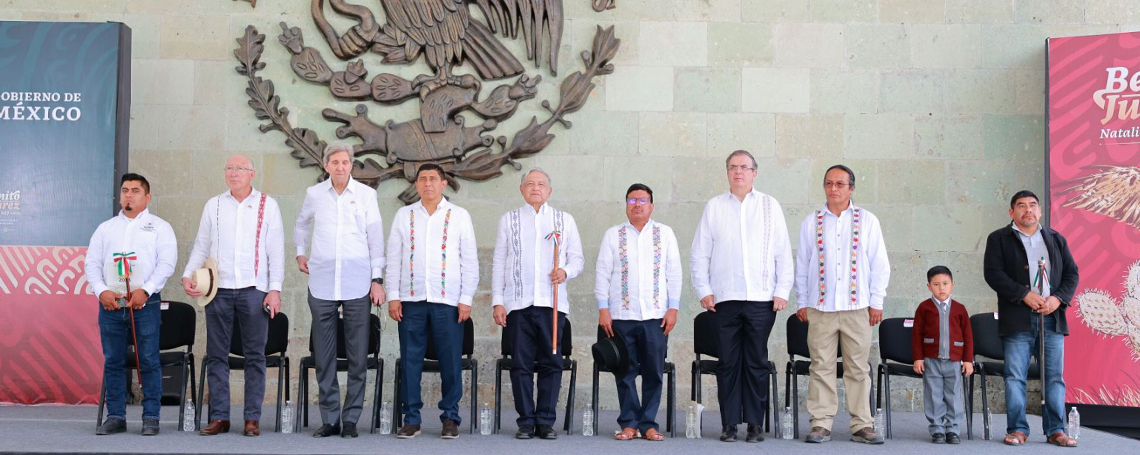 En este encuentro al que asistió John Kerry, enviado especial para el Clima del Presidente de los Estados Unidos Joe Biden, el Mandatario Estatal reivindicó la obra y defensa por la soberanía nacional de Juárez, originario de esta comunidad indígena zapoteca, hombre que se convirtió en un gigante y libertador de México.