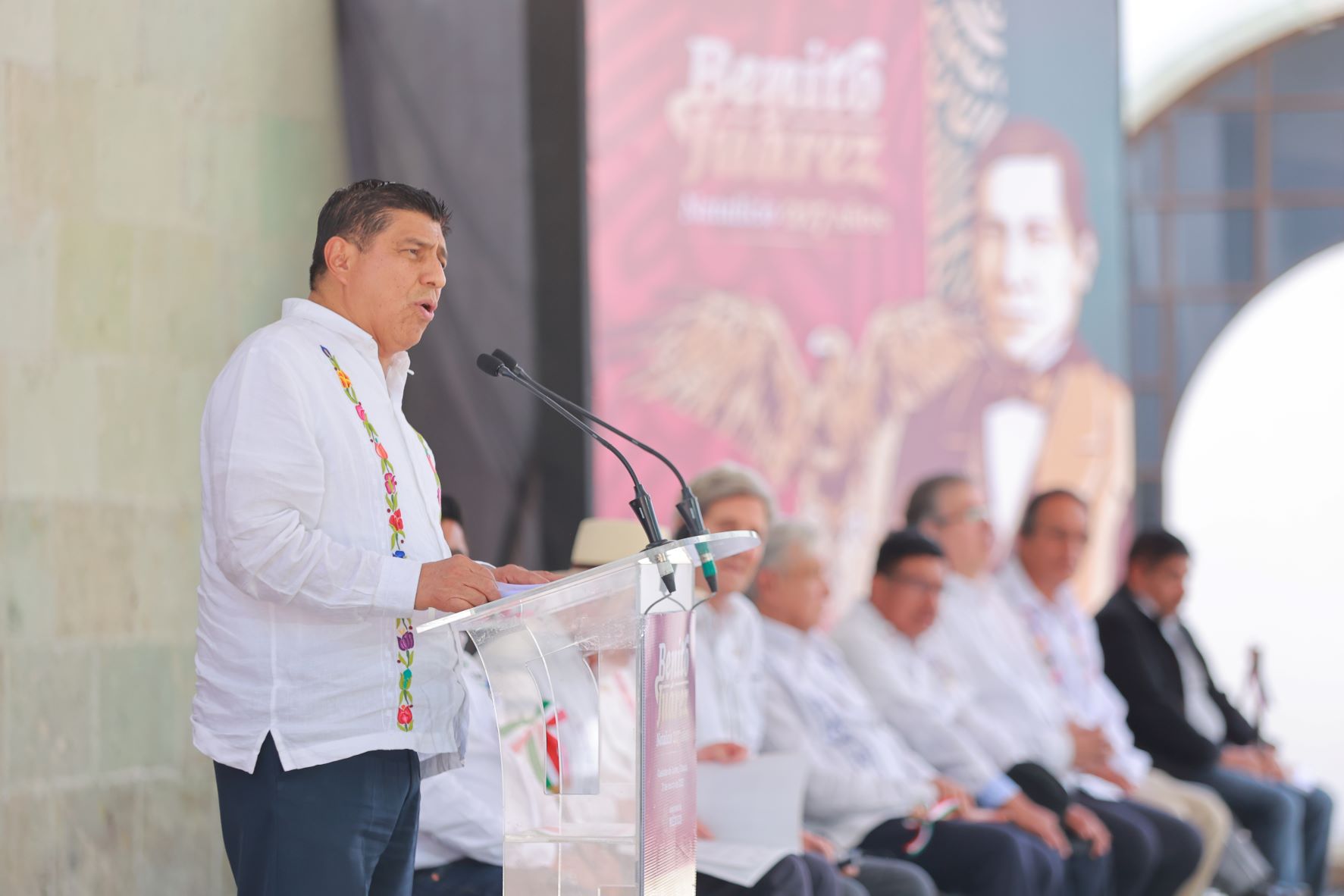 “Juárez, el hombre, el padre fundador y guardián de la Patria, es la roca en donde está edificado el Estado Nacional Mexicano; al gobernar para las personas más pobres y ser un ejemplo de obediencia a la buena ley, Juárez transformó a México en un país de leyes e instituciones”, destacó.