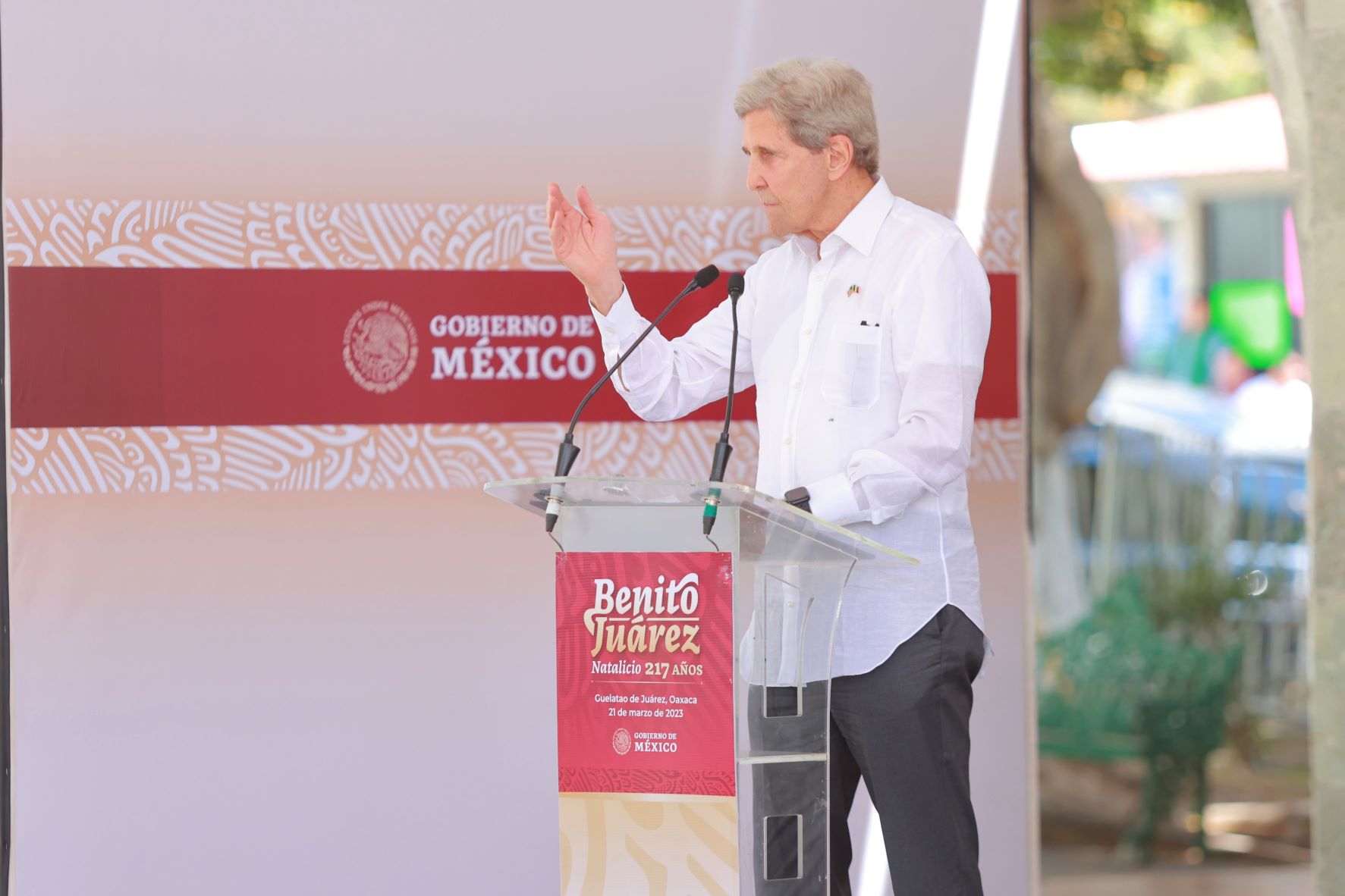 Junto a John Kerry, enviado especial del Presidente de Estados Unidos, destacó que al igual que Abraham Lincoln en este país del norte, Benito Juárez es reconocido por su grandeza moral y ambos son considerados unos gigantes de la historia, que abrazaron causas simultáneas por la defensa de la legalidad y la justicia, y por la dignidad de los seres humanos.