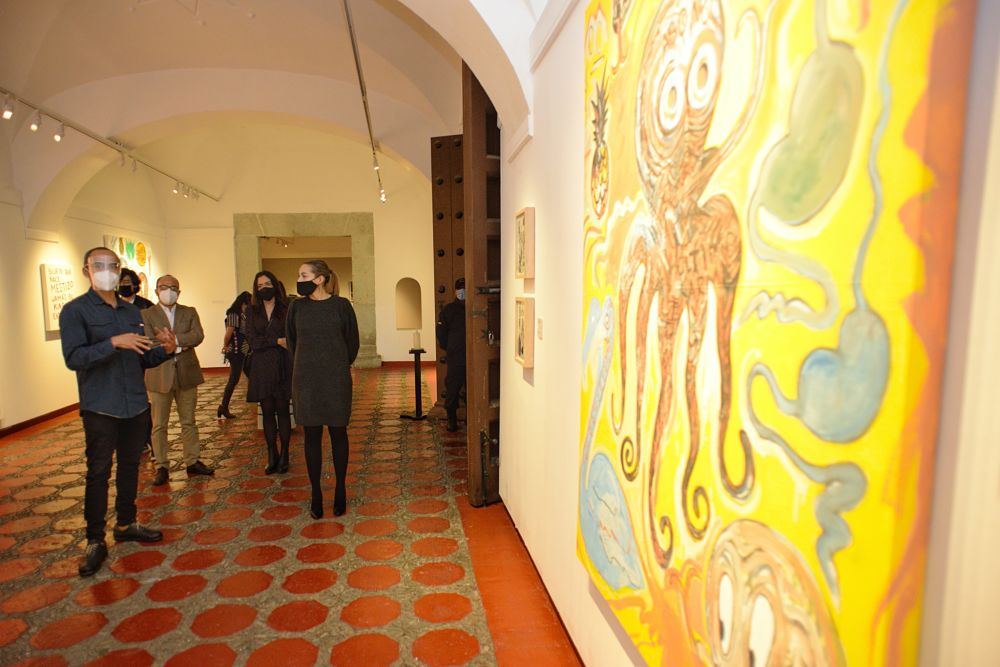 La exposición “Karma Mestizo” fue inaugurada por la titular de la Secretaría de las Culturas y Artes de Oaxaca (Seculta), Karla Villacaña Quevedo; la directora de la Galería Quetzalli, María Saldaña Julián; el académico Luis Alonso Vásquez; y el director general de la Casa de la Cultura Oaxaqueña, Jesús Emilio de Leo Blanco.
