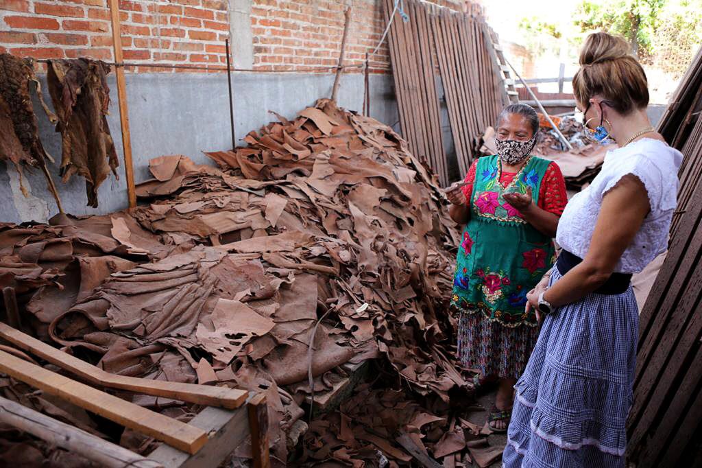 En esta ocasión, la esposa del gobernador Alejandro Murat Hinojosa, visitó la cooperativa Ndavaa, fundada en 1982 por mujeres zapotecas. Ellas se dedican a la elaboración de calzado artesanal.