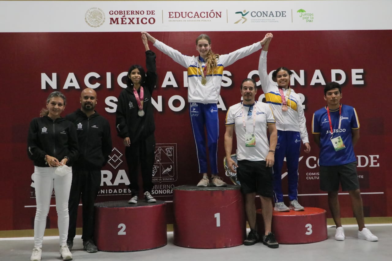 Al final, en la categoría juvenil A, Emi Peña se quedó con la medalla de plata y flanqueada por las jaliscienses Katya Brockmann y Alexa Castro, quienes se quedaron con el oro y el bronce respectivamente, luego de la suma de las cinco rutas.