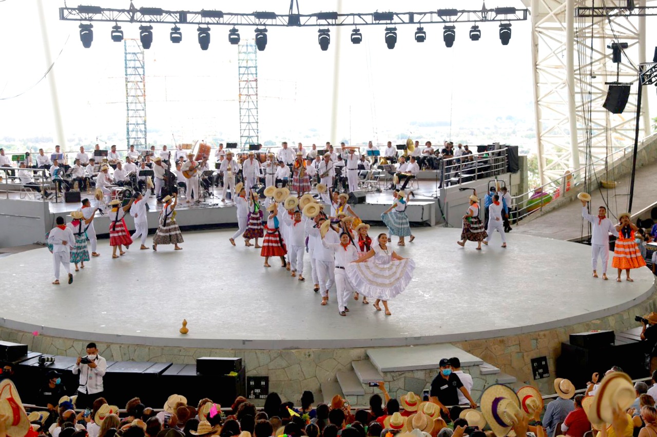 Con la música de la Banda de Música del Estado, el público a una sola voz coreó “la Canción Mixteca” de José López Alavés y con el vaivén de los sombreros de palma la delegación de la Heroica Ciudad de Huajuapan de León hizo su presentación para luego ejecutar el “inigualable e insuperable” “Jarabe Mixteco” que arrancó la ovación de los asistentes.