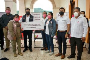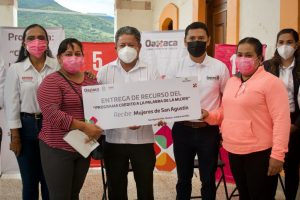 Previamente y con la representación del titular de la Sebien, Rubén Vasconcelos Méndez, la subsecretaria de Inclusión Social de la Institución, Claritza Ordaz Pineda encabezó la entrega de recursos del Programa Crédito a la Palabra de la Mujer por un monto de 60 mil pesos a grupos de mujeres emprendedoras de San Agustín Etla.