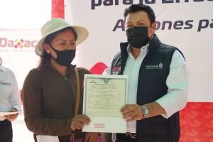 Acompañada del Director de BanOaxaca, Igmar Medina Matus, así como de autoridades municipales de San Felipe Tejalapam, San Pablo Etla y San Lorenzo Cacaotepec, la funcionaria estatal refirió que a través de este beneficio se logra empoderar el trabajo que realizan las mujeres oaxaqueñas, dotándoles de independencia financiera y recursos que les permiten impulsar sus actividades productivas.
