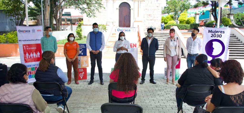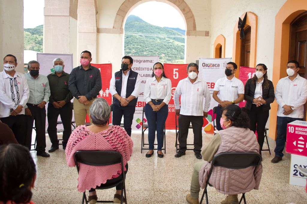 Acompañada del Director de BanOaxaca, Igmar Medina Matus, así como de autoridades municipales de San Felipe Tejalapam, San Pablo Etla y San Lorenzo Cacaotepec, la funcionaria estatal refirió que a través de este beneficio se logra empoderar el trabajo que realizan las mujeres oaxaqueñas, dotándoles de independencia financiera y recursos que les permiten impulsar sus actividades productivas.