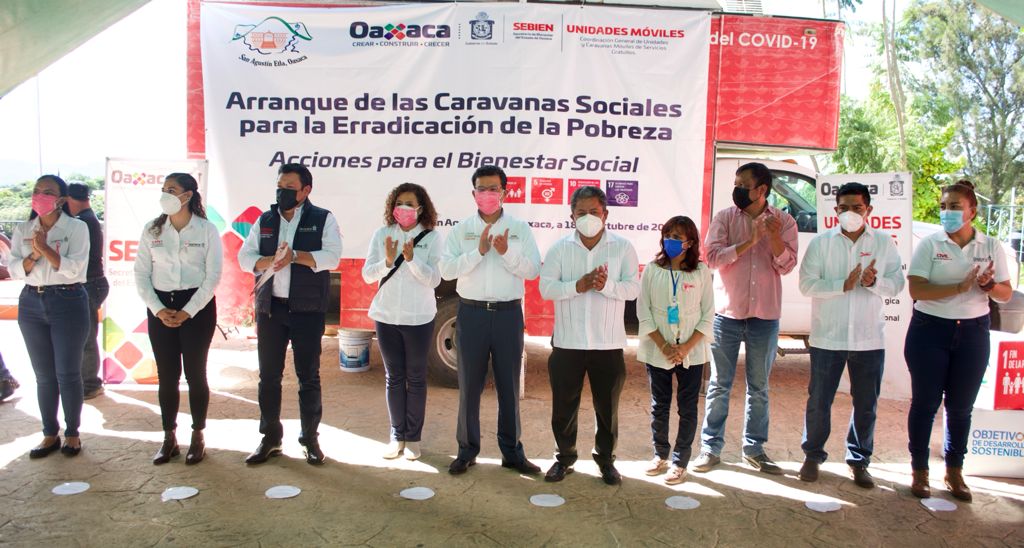 San Agustín Etla, Oax. 19 de octubre de 2021. En el marco de la conmemoración del Día Internacional para la Erradicación de la Pobreza 2021 -celebrado el pasado 17 octubre- el secretario de Bienestar (Sebien) en la entidad, Rubén Vasconcelos Méndez, dio el banderazo de arranque a las Caravanas Sociales para la Erradicación de la Pobreza, cuyo objetivo es mejorar las condiciones de vida de las familias oaxaqueñas más necesitadas.