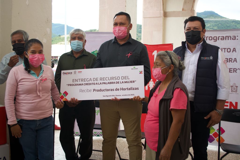 Previamente y con la representación del titular de la Sebien, Rubén Vasconcelos Méndez, la subsecretaria de Inclusión Social de la Institución, Claritza Ordaz Pineda encabezó la entrega de recursos del Programa Crédito a la Palabra de la Mujer por un monto de 60 mil pesos a grupos de mujeres emprendedoras de San Agustín Etla.