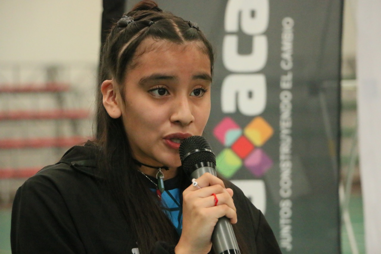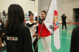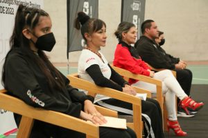 Los artemarcialistas, Ángel Emanuel Ramírez Ramírez y Xeomara Villanueva Paz, fueron parte del presídium en representación de sus compañeras y compañeros, pero fue la competidora de artes marciales en formas, quien dio el mensaje de agradecimiento, destacando que competirán con todas sus fuerzas en el área de competencia.