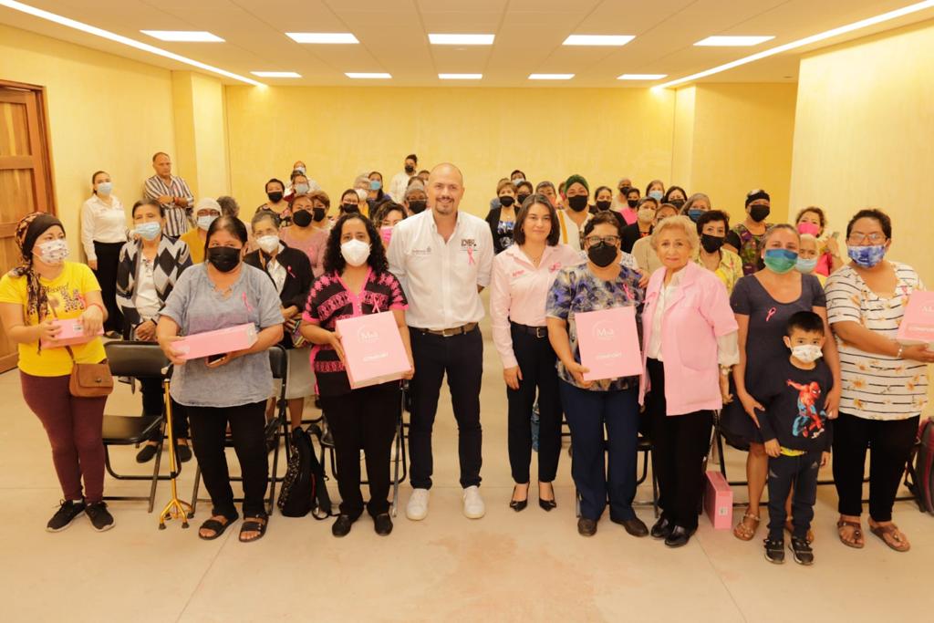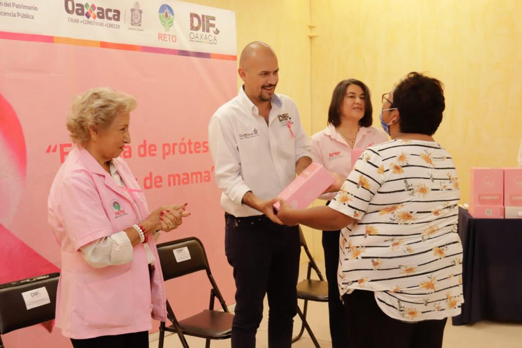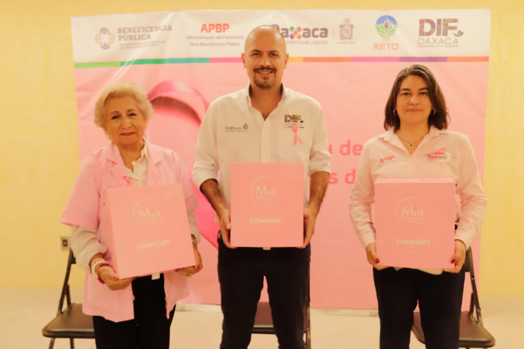 Por tal motivo, el director general del Sistema DIF Oaxaca, Christian Holm Rodríguez, en colaboración con la directora general de la Administración del Patrimonio de la Beneficencia Pública (APBP), Alina Gómez Lagunas, y la presidenta y representante legal de Grupo Reto Oaxaca, Mina Fernández Pichardo, sumaron esfuerzos para entregar apoyos de prótesis externas de mama, a 50 beneficiarias que padecen y han padecido esta enfermedad.