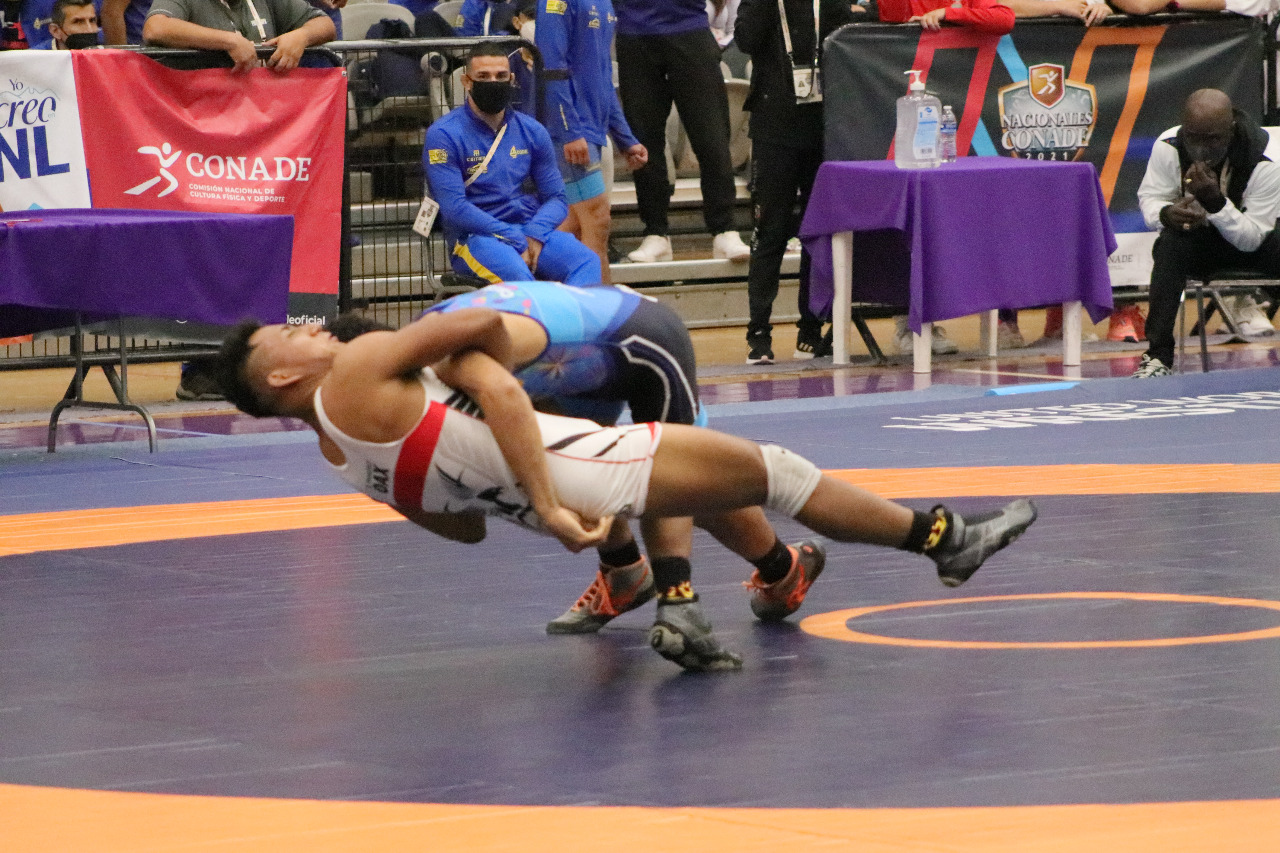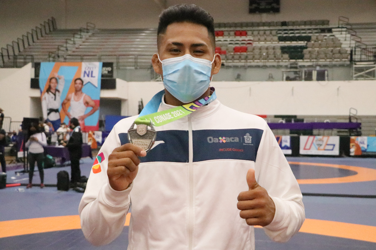 Monterrey, Nuevo León. 11 de julio de 2021.- En el segundo día de actividad de las luchas asociadas de los Juegos Nacionales Conade, Oaxaca se colgó tres medallas, de las cuales una fue de oro y dos de plata, como resultado de siete competidores que entraron al colchón en el cierre del estilo Libre.