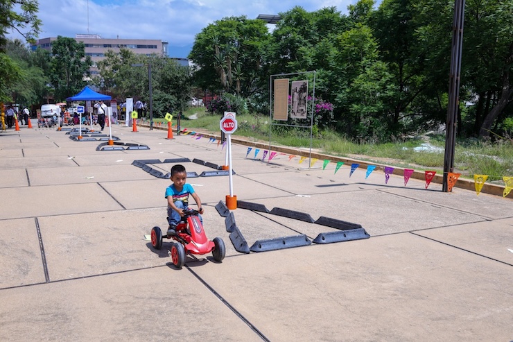 Durante cuatro horas, la niñez y adolescencia junto a personas mayores tuvo la oportunidad para disfrutar de andar en bicicleta por los espacios que alberga este espacio público natural, dar un paseo por el trenecito o para aprender sobre señales viales y sus derechos.
