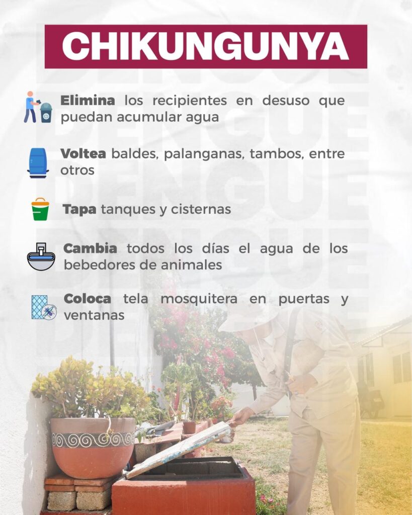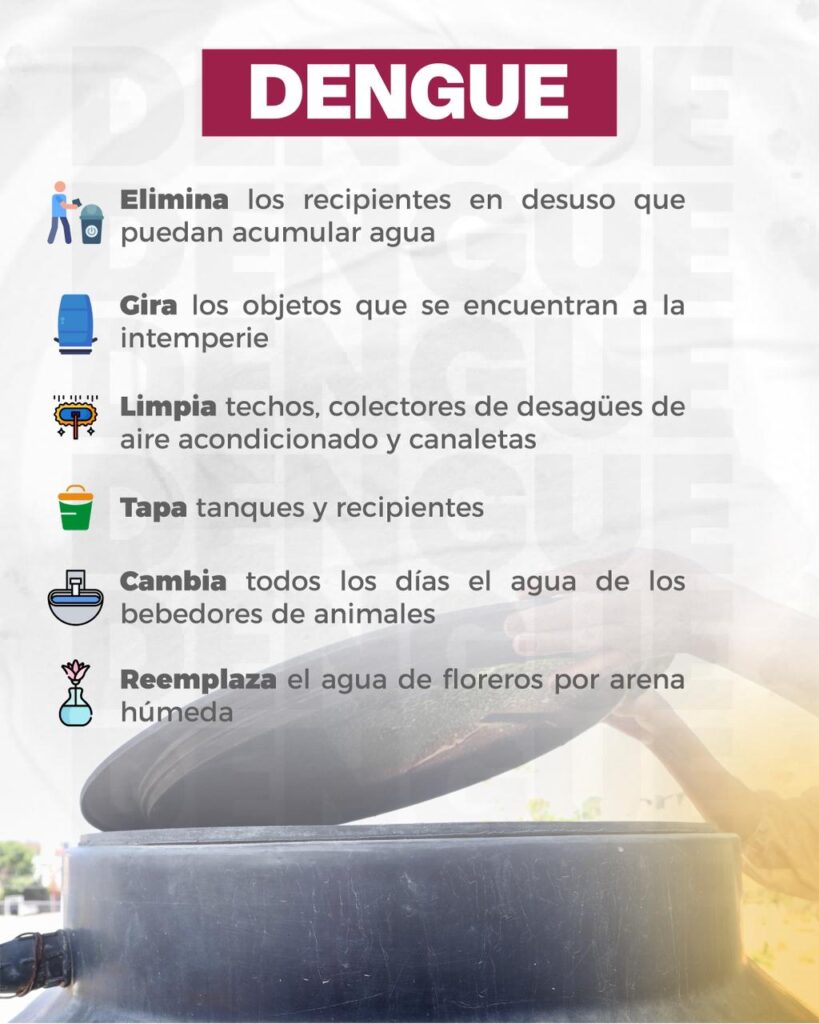 Lo anterior, es parte de la Primera Jornada Nacional de lucha contra el Dengue y Chikungunya 2026, la cual promueve la limpieza de patios, azoteas y jardines, así como el tapado de recipientes que puedan acumular agua de lluvia, principal reservorio del mosquito transmisor.