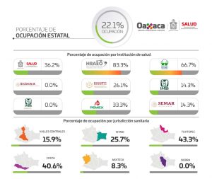 Por distribución geográfica, del global de casos acumulados 32 mil 563 son residentes de Valles Centrales, 4 mil 560 del Istmo, 2 mil 998 de Tuxtepec, 2 mil 570 de la Costa, 4 mil 082 de la Mixteca y mil 743 de la Sierra.