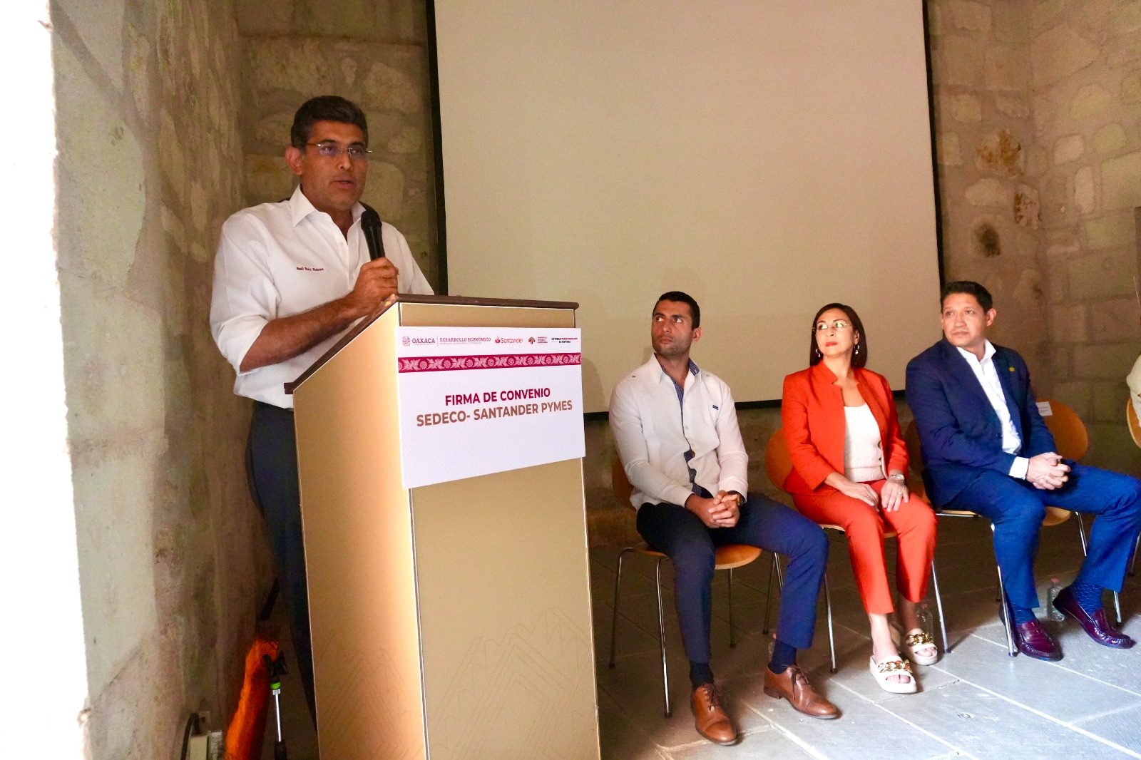 En tanto, el director general adjunto de Red Comercial de Santander, Juan Villafuerte Torres señaló que esta institución financiera se ha propuesto ser el banco de las PyMEs en el estado para contribuir al desarrollo de Oaxaca. “Este convenio nos colocará como líderes para el apoyo de este sector”, puntualizó.