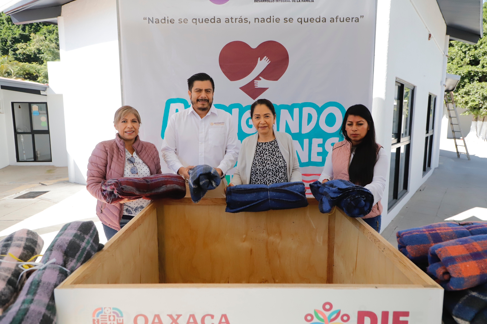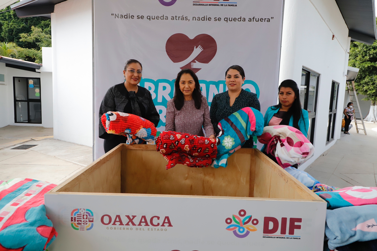 Al hacer la entrega de cobijas y suéteres para personas de distintas edades, Hilda María Oropeza Romero, directora del Instituto Miguel Alemán, reconoció la labor altruista de esta noble institución, debido a que “Abrigando Corazones” no solo arropa a las personas, también comparte el mensaje de que las y los oaxaqueños no están solos y que se está tomando en cuenta su bienestar físico y emocional.
