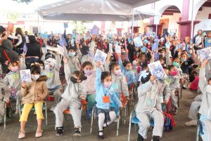 También acompañó al Gobernador Salomón Jara y a las niñas y niños, el presidente municipal del lugar, Juan Carlos García Márquez.