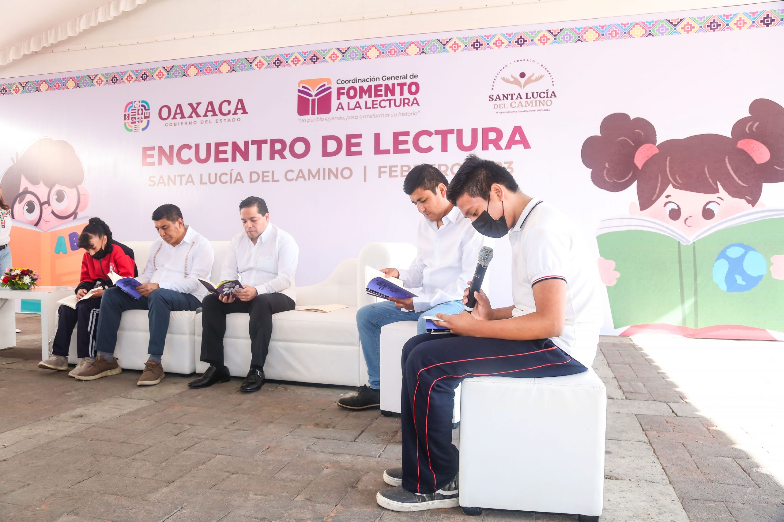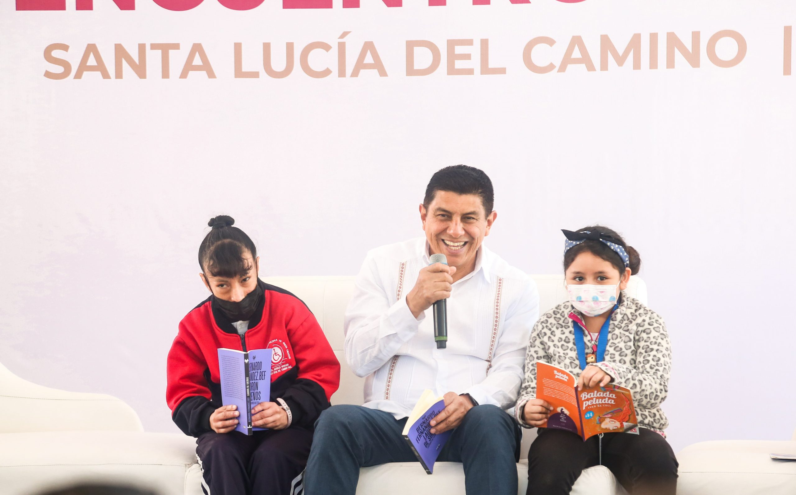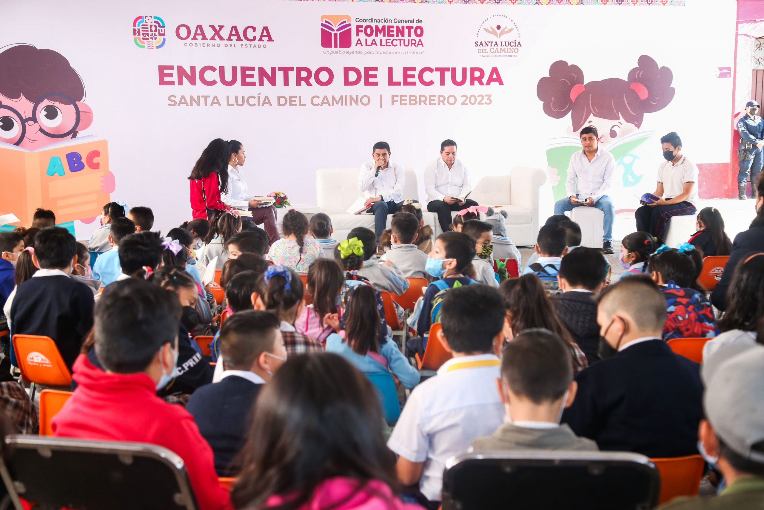 En este sentido, el Mandatario estatal asistió a un Encuentro de Lectura en el municipio de Santa Lucía del Camino, donde compartió este momento de aprendizaje y magia, con niñas y niños de siete instituciones de educación básica.