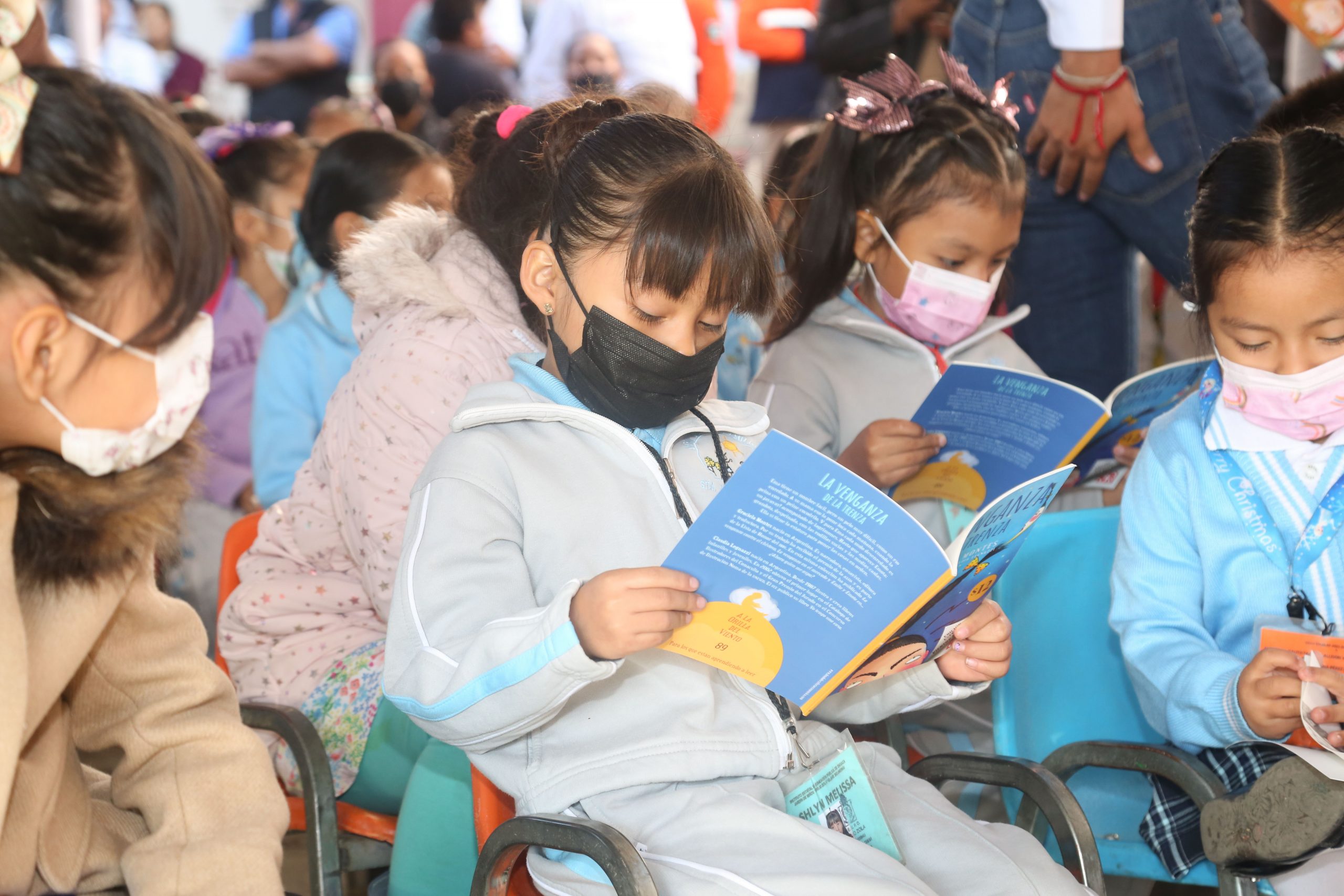 Jara Cruz pidió a niñas, niños, padres, madres de familia y docentes, a promover la lectura y el conocimiento a través de las letras, a fomentar a la lectura y de esta manera abonar a la transformación de la educación.