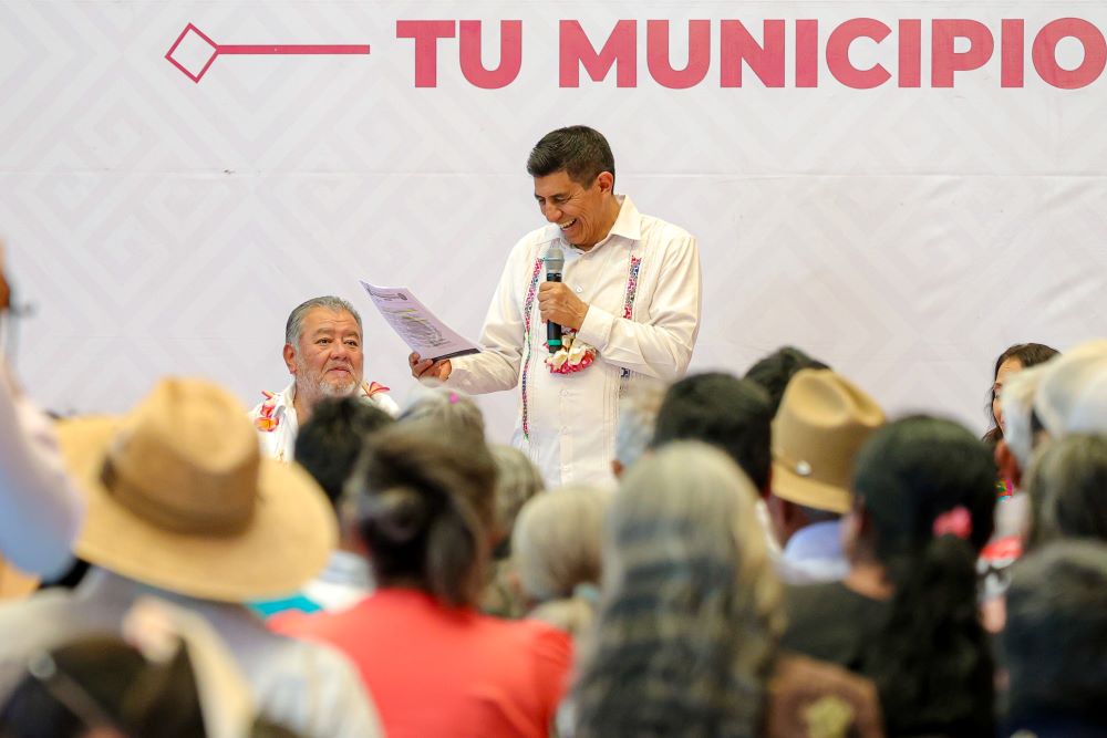 El Mandatario estatal informó que a través de la estrategia Trabajo que Transforma tu Municipio el Gobierno de la Primavera Oaxaqueña está recorriendo los municipios con alta marginación para acercar servicios de infraestructura social y educativa, vivienda, agua y apoyo a grupos prioritarios.