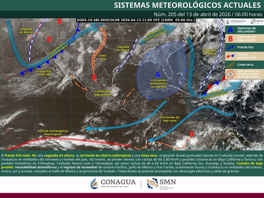 Oaxaca de Juárez, Oax., 13 de abril de 2026.– La Coordinación Estatal de Protección Civil y Gestión de Riesgos (CEPCyGR) informa que se mantendrán condiciones para lluvias con intervalos de chubascos, algunos puntualmente fuertes en zonas aisladas de la Mixteca y más generalizados en la Sierra Sur.