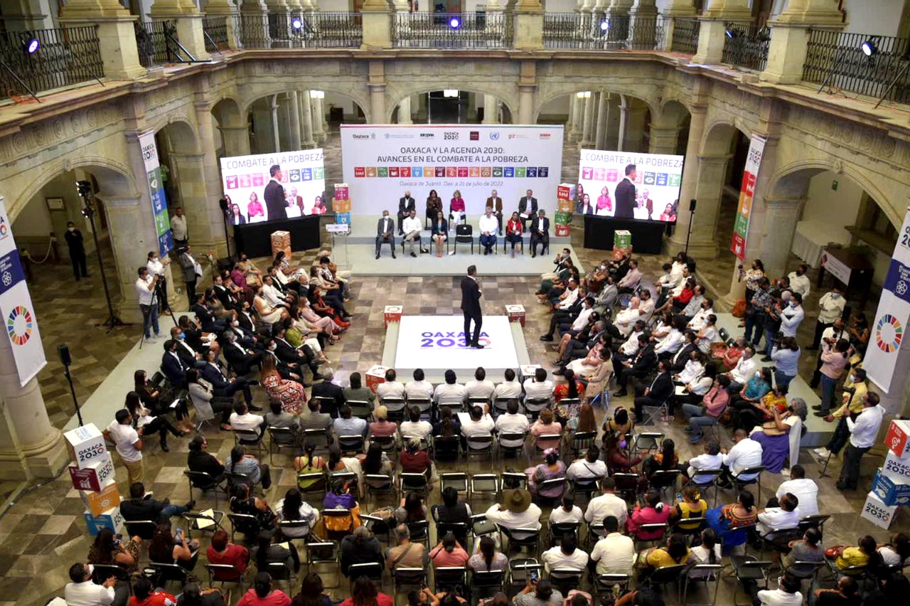 En el evento internacional, el director de la Red de Pobreza Multidimensional, de la iniciativa de Desarrollo Humano y Pobreza de la Universidad de Oxford, Gonzalo Hernández Licona, señaló que el esfuerzo que se realizó de manera coordinada del Gobierno de Oaxaca para reducir la pobreza a nivel estantal y municipal desde el 2016, dio frutos importantes en los últimos años. “Del 2016 a 2020 la pobreza en Oaxaca bajó de 68% a 61.7% y la pobreza extrema del 2016 al 2020 bajó del 22% al 20.6% en un estado con retos y en pandemia”.