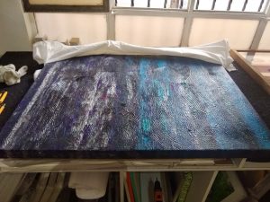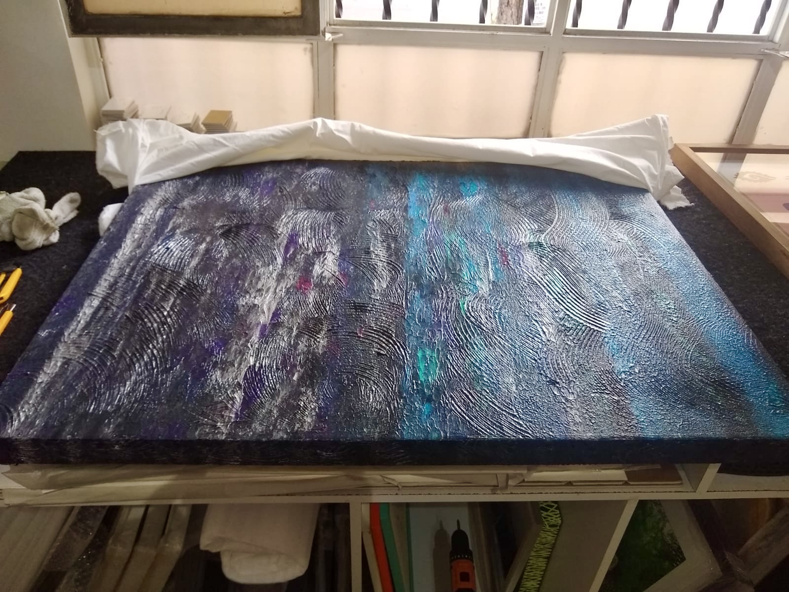 El cuadro, que lleva el mismo nombre de la exposición, fue realizado por Dimitrova con la técnica barrido de color, haciendo uso del acrílico, en esta serie de cuadros que componen “Los colores del agua”, el artista asegura estar en una búsqueda de una reconexión y de una reordenación de colores líquidos que, al recorrer mares, estanques, océanos y líneas de luz, nos reconectan con nuestro ser más primigenio, en medio de una intuición creadora.