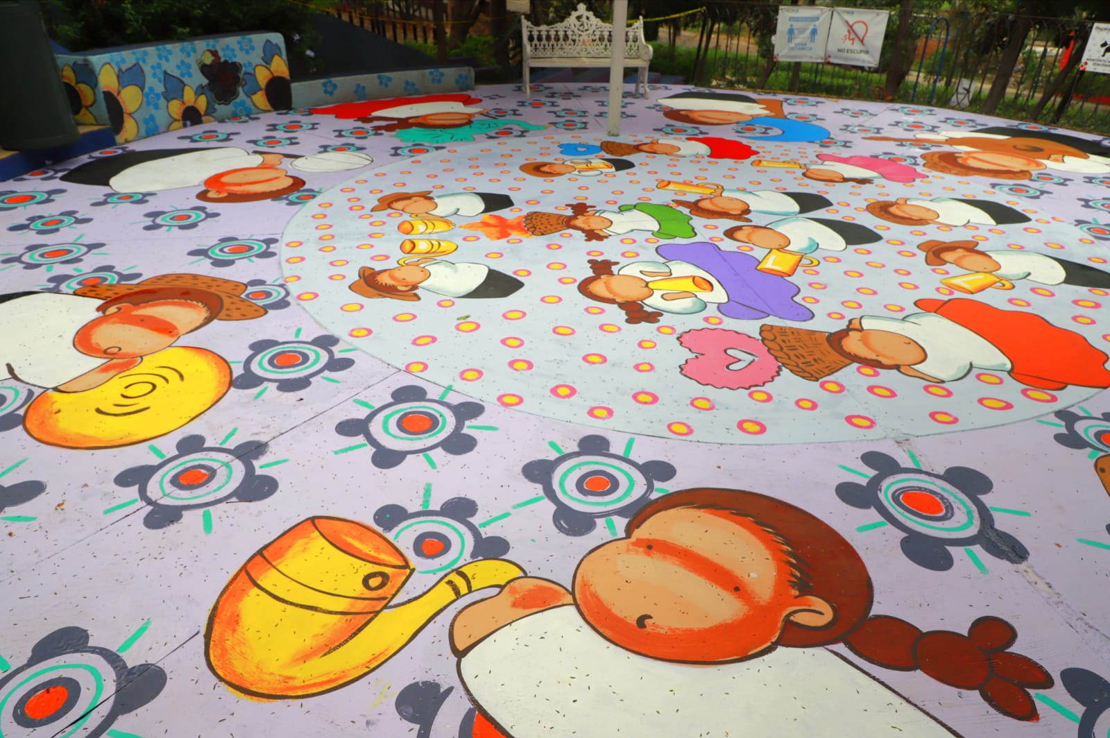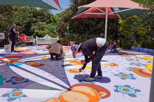 “El mural de este año es seguimiento de una obra que se realizó hace tres años alusivo a las ocho regiones de la entidad, decidimos hacerlo con la temática de la calenda y además interactivo por la recurrente visita de niños y niñas a este lugar”, señaló la artista Rocío Hernández.